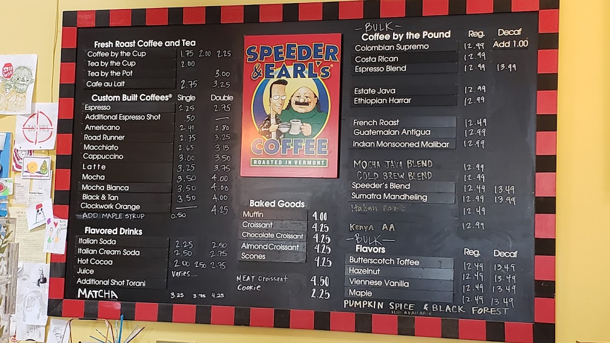With an inviting atmosphere, it's an ideal spot for relaxation or productivity, boasting rave reviews for its exceptional pastries and must-try specialties like the Maple Latte. Whether you're popping in for a quick coffee or settling down with a good book, Speeder & Earl's embodies the essence of Vermont's local charm.
